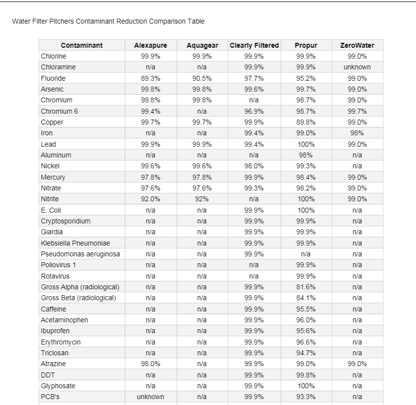 There are plenty of water purification systems on the market. Some of the best cost a bit more, but not as much as a whole house unit. Below is a partial comparison chart of some of the top rated water filter pitchers: